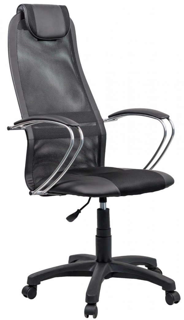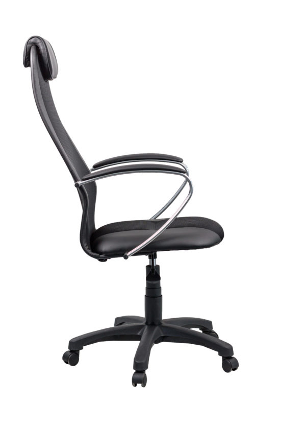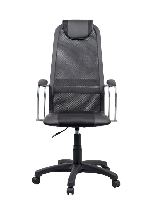 Строгое и удобное офисное кресло. Сетка на спинке и форма, повторяющая изгибы спины, надежно поддерживают позвоночник при использовании. Кресло оснащено мягкими подлокотниками.
