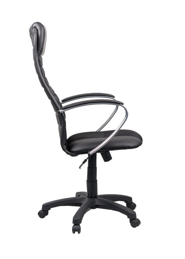 Строгое и удобное офисное кресло. Сетка на спинке и форма, повторяющая изгибы спины, надежно поддерживают позвоночник при использовании. Кресло оснащено мягкими подлокотниками. Центрированный механизм качания помогает расслабиться во время работы.