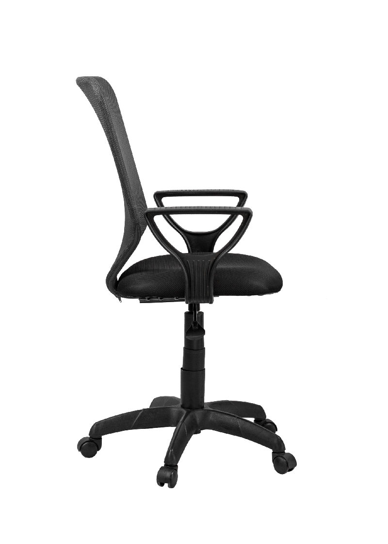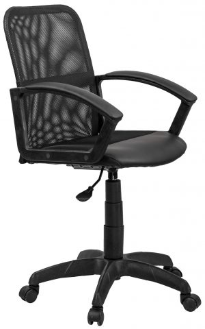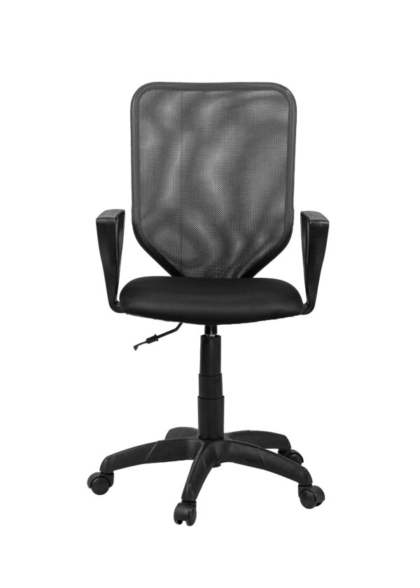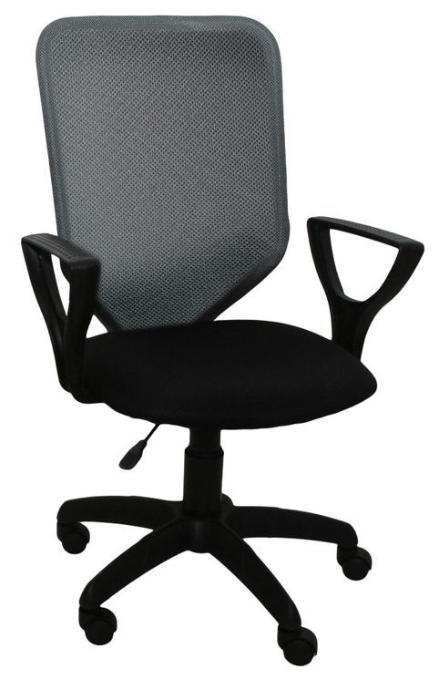 Солидное офисное кресло с регулировкой высоты. Сплошная спинка выполнена из прочной сетки. Подлокотники и пятилучие выполнены из качественного пластика.