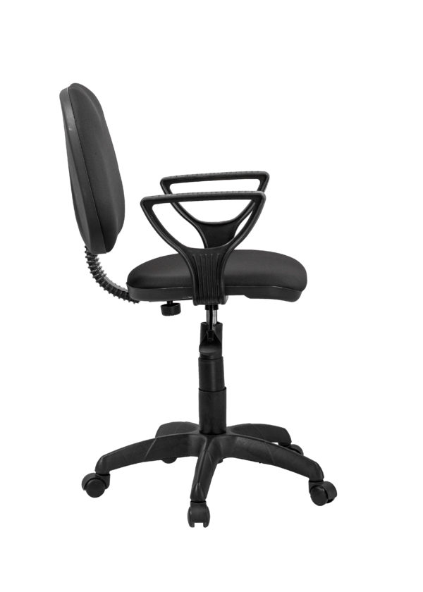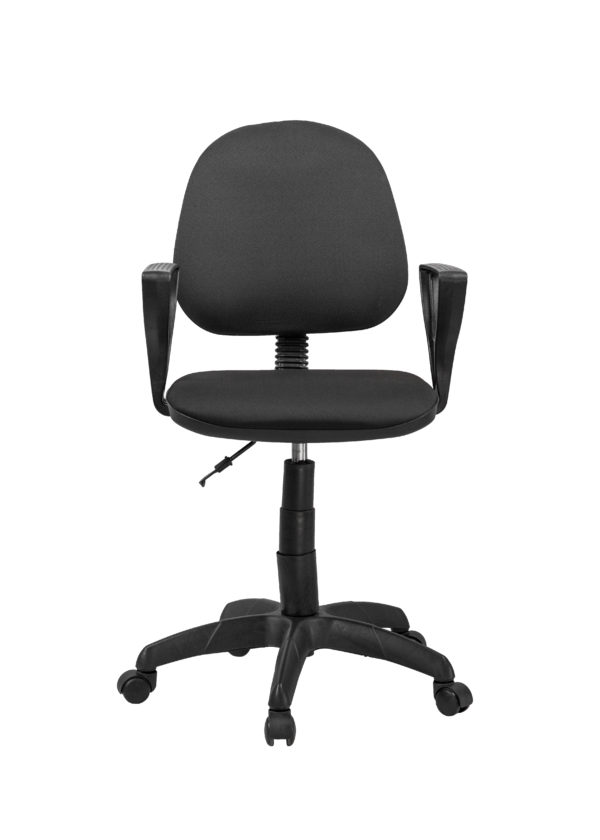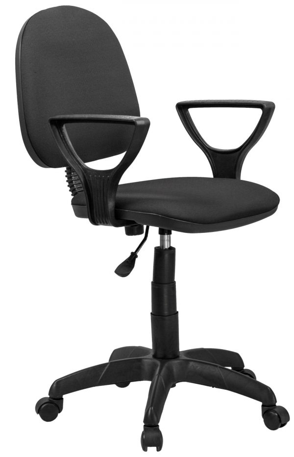 Удобное кресло для офиса с регулировкой высоты. Подъем от 40 до 55 см с помощью надежного рычага. Сиденье покрыто толстым слоем поролона, а на спинке закреплена большая подушка.