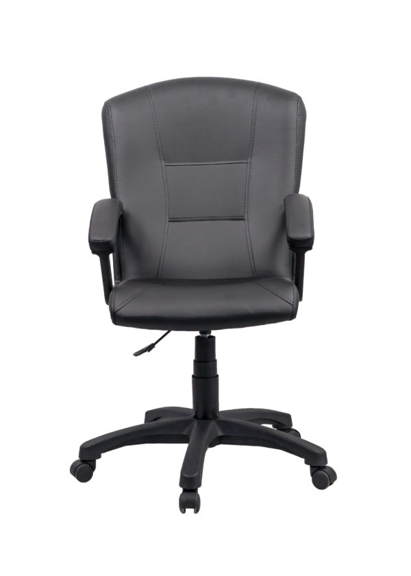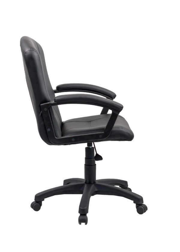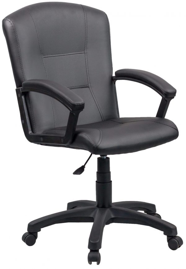 Стильное офисное кресло из качественной искусственной кожи. Максимальный комфорт гарантируют мягкие поролоновые прослойки на спинке и сиденье. Подлокотники оснащены накладками. Каркас выдерживает нагрузки до 100 кг.
