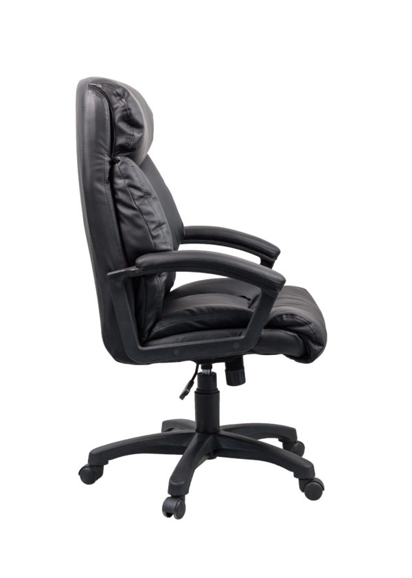 Стильное офисное кресло из качественной искусственной кожи. Максимальный комфорт гарантируют мягкие поролоновые прослойки на спинке и сиденье. Подлокотники оснащены накладками. Центрированный механизм качания помогает расслабить спину во время работы. Кресло отличается интересным дизайном обивки.