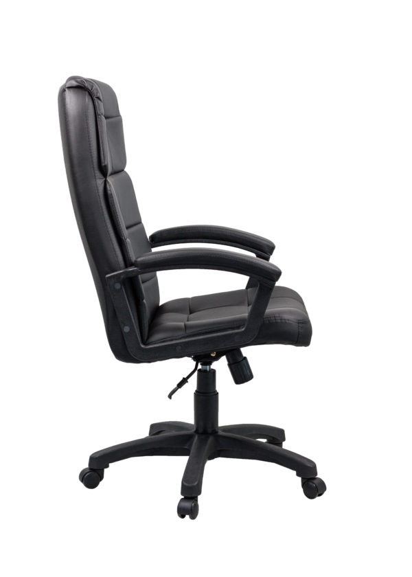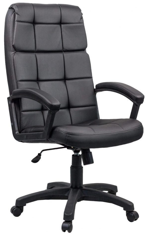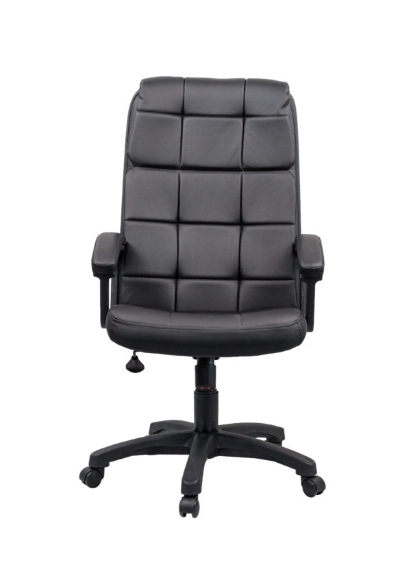 Стильное офисное кресло из качественной искусственной кожи. Максимальный комфорт гарантируют мягкие поролоновые прослойки на спинке и сиденье. Подлокотники оснащены накладками. Имеется механизм качания с регулировкой наклона под вес. Кресло отличается интересным дизайном обивки.