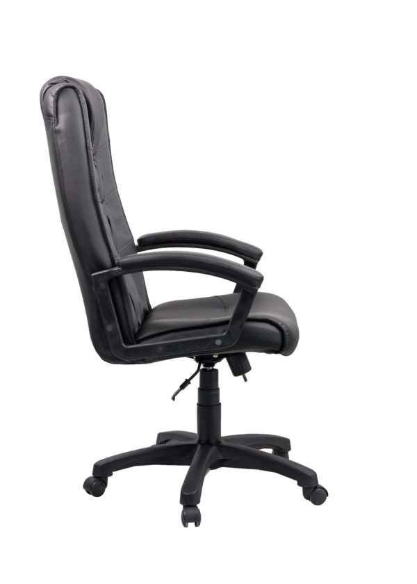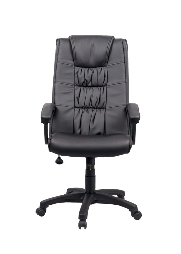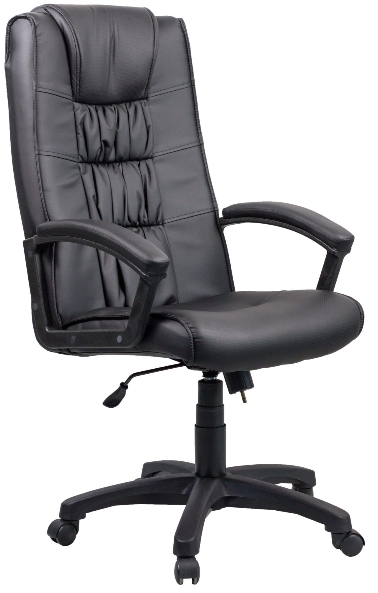 Стильное офисное кресло из качественной искусственной кожи. Максимальный комфорт гарантируют мягкие поролоновые прослойки на спинке и сиденье. Подлокотники оснащены накладками. Имеется механизм качания с регулировкой наклона под вес. Кресло отличается интересным дизайном обивки.