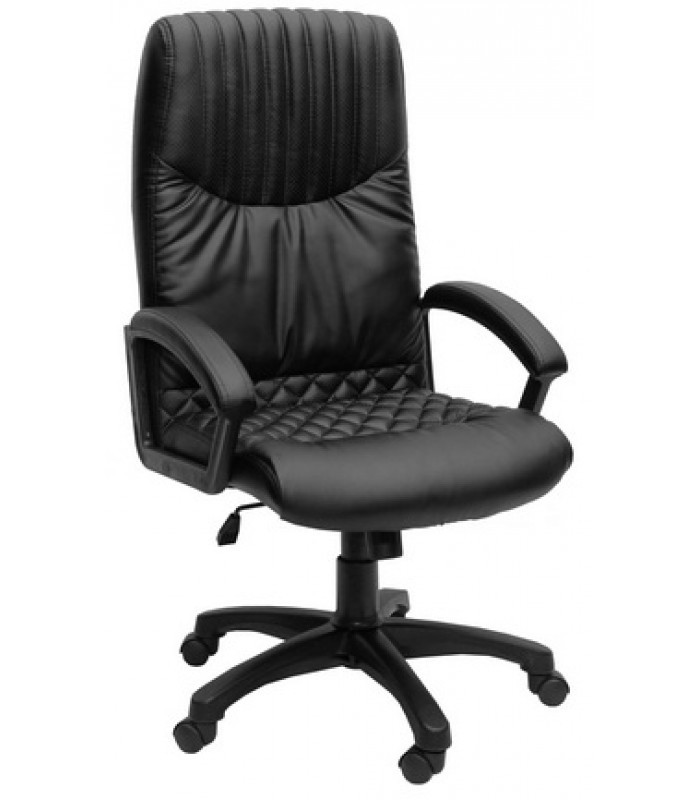 Стильное офисное кресло из качественной искусственной кожи. Максимальный комфорт гарантируют мягкие поролоновые прослойки на спинке и сиденье. Подлокотники оснащены накладками. Имеется механизм качания с регулировкой наклона под вес. Кресло отличается интересным дизайном обивки.
