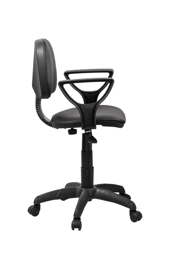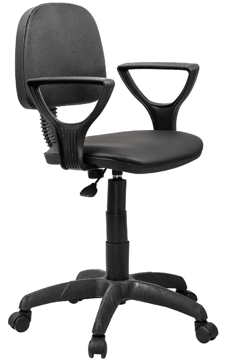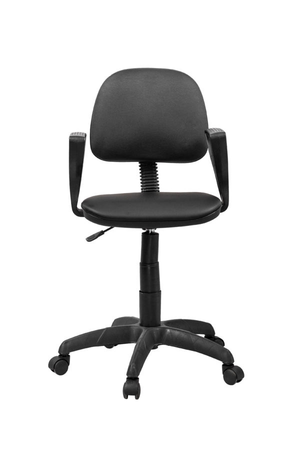 Удобное кресло для офиса с регулировкой высоты. Подъем от 40 до 55 см с помощью надежного рычага. Сиденье покрыто слоем поролона толщиной в 30 мм. Кресло оснащено подлокотниками средней высоты.