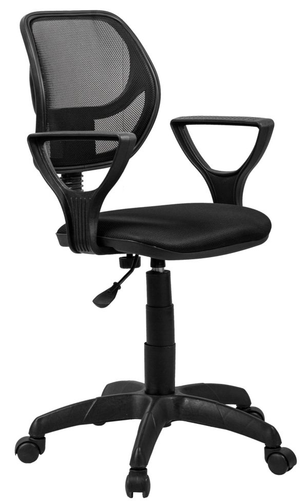 Удобное кресло для офиса с регулировкой высоты. Подъем от 40 до 55 см с помощью надежного рычага. Спинка выполнена из прочной сетки. Кресло оснащено подлокотниками средней высоты.