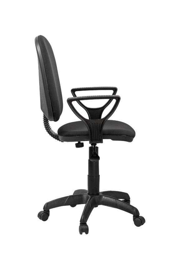 Высота подъема кресла от 40 см до 55 см, что позволяет удобно сидеть человеку любого роста.Сиденье мягкое, покрытое поролоном толщиной 30 мм, высота спинки 510 мм, ширина спинки 390 мм, ширина сиденья 470 мм и глубина сиденья 450 мм — обеспечивают надежную поддержку корпуса и удобное расположение в кресле. Имеются пластиковые подлокотники, наличие которых уменьшает боли и дискомфорт в плечах и шее.