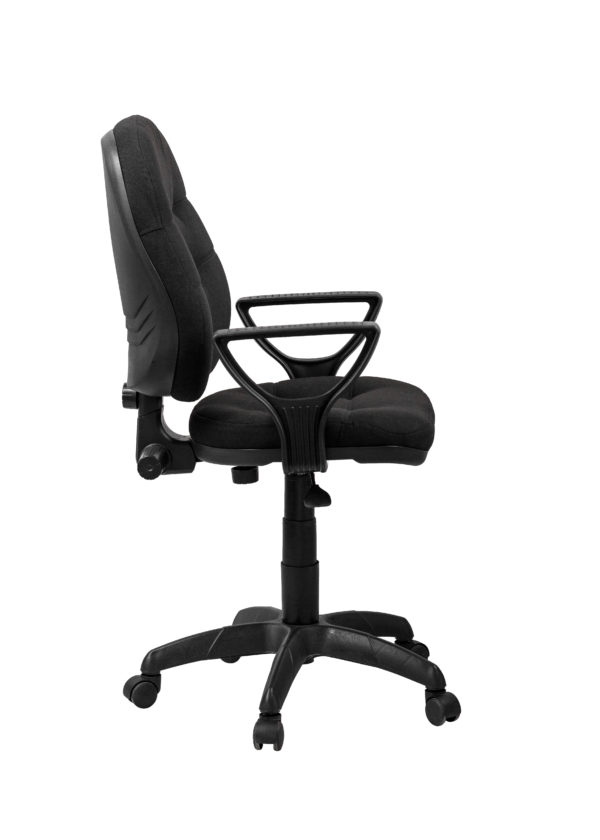 Высота подъема кресла от 40 см до 55 см, что позволяет удобно сидеть человеку любого роста. Ультрамягкое сиденье за счет поролона толщиной 60 мм. Высота спинки 510 мм ширина спинки 390 мм ширина сиденья 470 мм глубина сиденья 450 мм — обеспечивают среднюю поддержку корпуса и удобное расположение в кресле. Имеются пластиковые подлокотники, наличие которых уменьшает боли и дискомфорт в плечах и шее.
