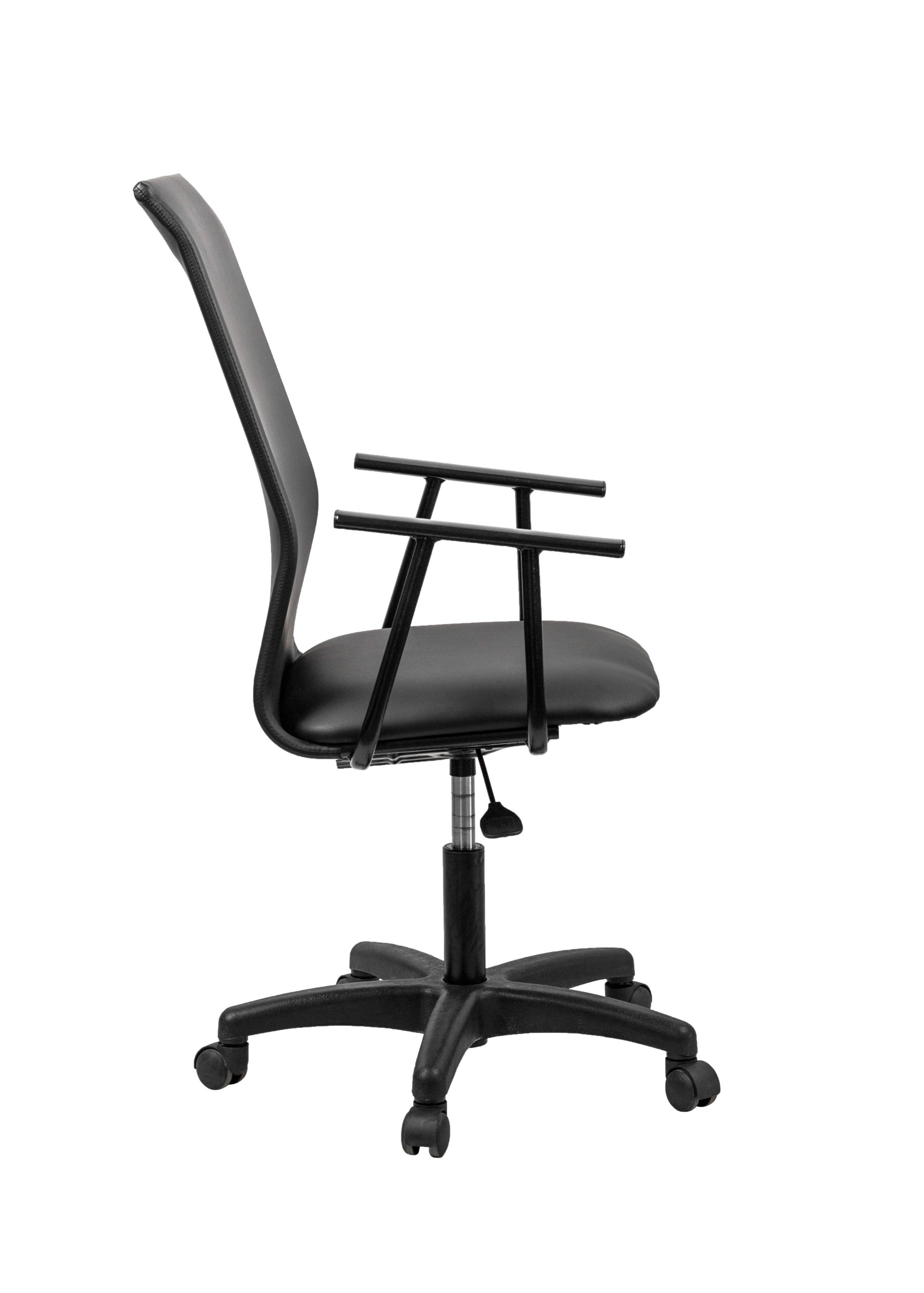 Компьютерное кресло на крепком каркасе из металла. Высокая спинка повторяет изгиб спины, снимая с нее напряжение во время долгой работы за столом.