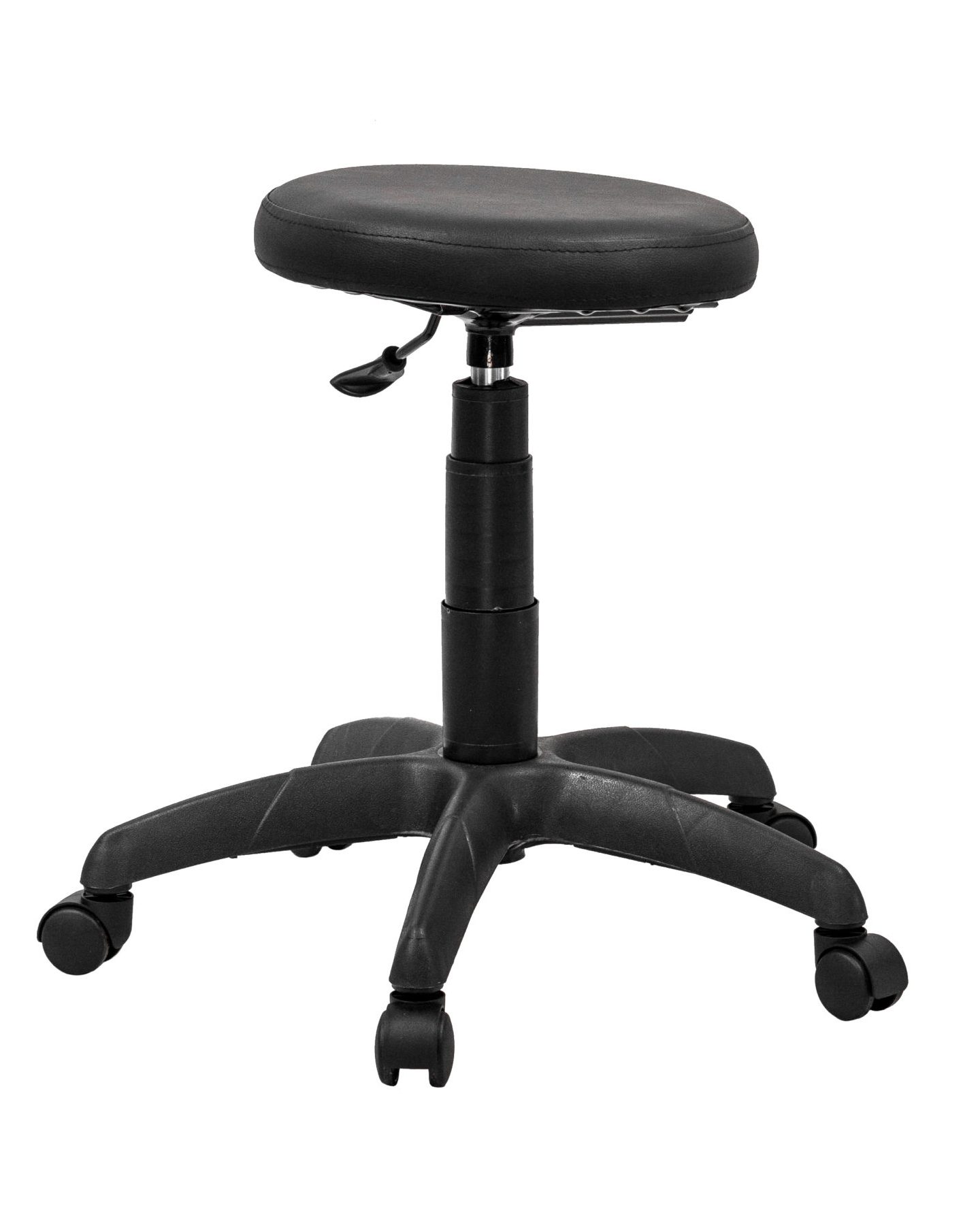 Удобный табурет с регулировкой высоты. Ножки оснащены крепкими колесными опорами, которые выдерживают нагрузки до 80 кг. Мягкое сиденье обито кожзамом.