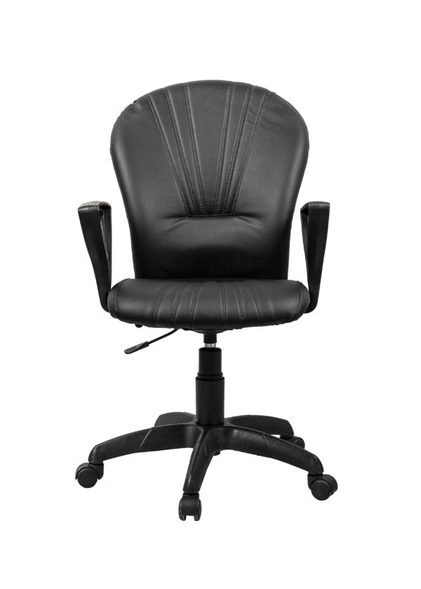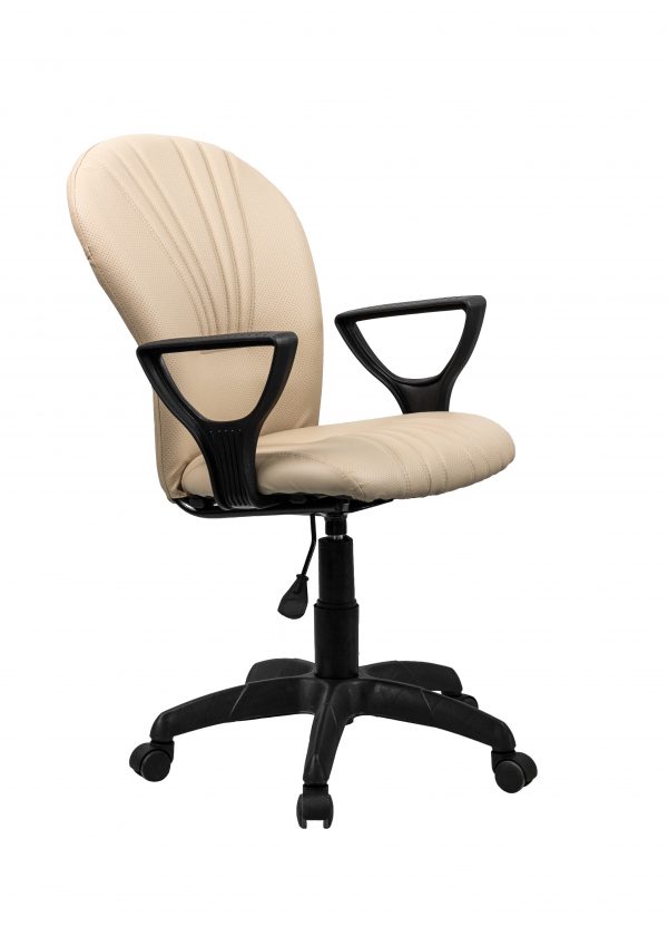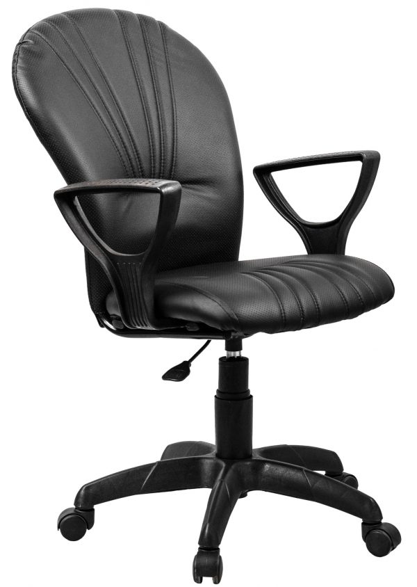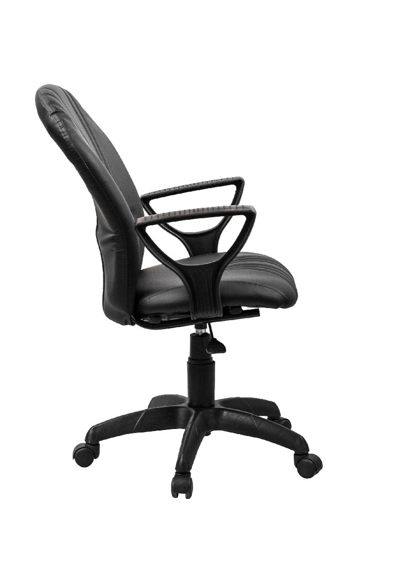Надежное компьютерное кресло с регулировкой высоты. Широкая спинка обеспечивает поддержку спины. На пластиковые подлокотники удобно опереться во время работы за письменным столом.